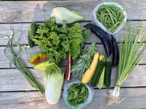 Wow, we are moving into the latter days of July already, and the summer CSA season is now 1/3 delivered. I know that you as a member can feel overwhelmed with the amount of produce that comes every darn week, or can maybe just get tired of certain crops that are in abundance. I certainly remember feeling this way when we were CSA members back in the 90’s. It really takes some creativity and planning to take care of that produce every Thursday evening when it comes into your home. Washing it, putting it into the correct container and into the right place in the fridge – perhaps cutting some of it up and having it as a readied snack. Or maybe it is your jam to just put 75% of it into a soup or a big stir fry for a weekend feast. Whatever works for you is great, as long as you are finding out what works for you and are not just becoming frustrated. There are tons of recipes at your fingertips, but you can’t go too wrong with just cutting something up, putting oil/salt/pepper on it and sautéing it in a pan, or on the grill. It is my hope that you are trying new vegetables, eating them in new ways, with different spices and herbs, and thoroughly enjoying a little more time in your kitchen and with your food. Bon appétit!